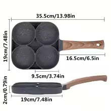 Disfruta de desayunos y comidas prácticas con esta sartén de 4 compartimentos, ideal para preparar huevos, tortillas, hamburguesas, tocino, panqueques ¡y mucho más!